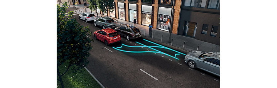 Park Assist 3.0 ermöglicht automatisiertes, paralleles Einparken, indem das System das Fahrzeug rückwärts in eine Lücke rangiert oder herausfährt.
