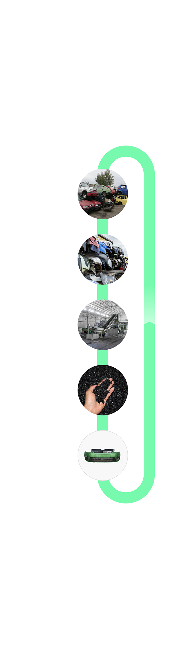 Car parts like the bumper do not have to end up in a landfill, even if they are damaged. The bumper of the 2023 IVET show car highlights the potential of recycling: At the end of a car’s lifespan, this part is dismounted, crushed, and turned into a granulate, ready to create a new bumper. This closed-loop system can eliminate waste and the need for new material.