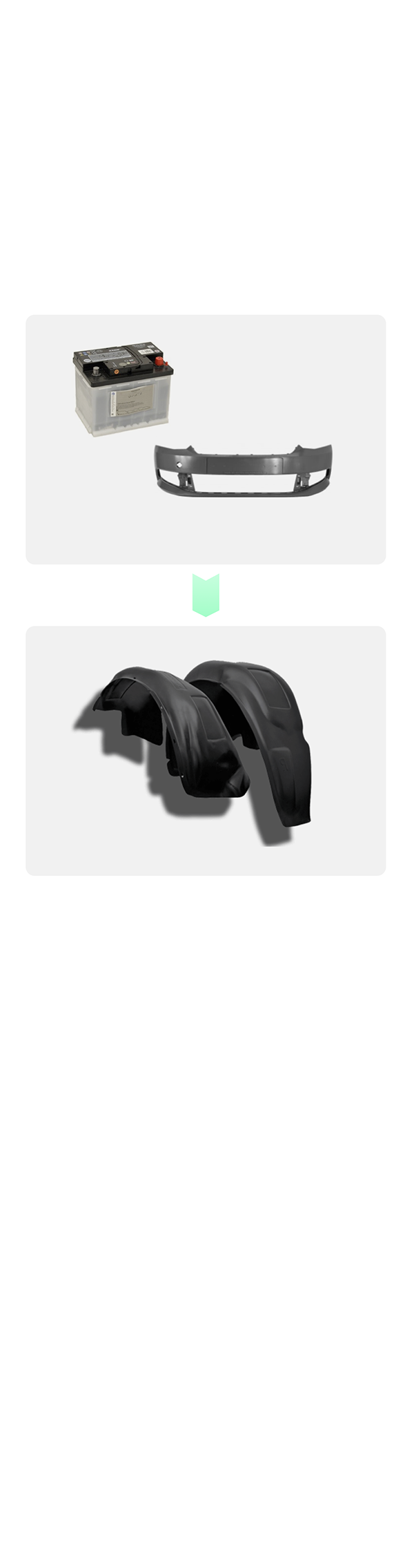The wheel arches of the 2023 IVET show car incorporate materials such as recycled 12V car battery covers, former bumpers, and even plastic caps from PET bottles. Salvaging these materials from post-consumer waste exemplifies the closed-loop principle – transforming discarded items into modern car components.