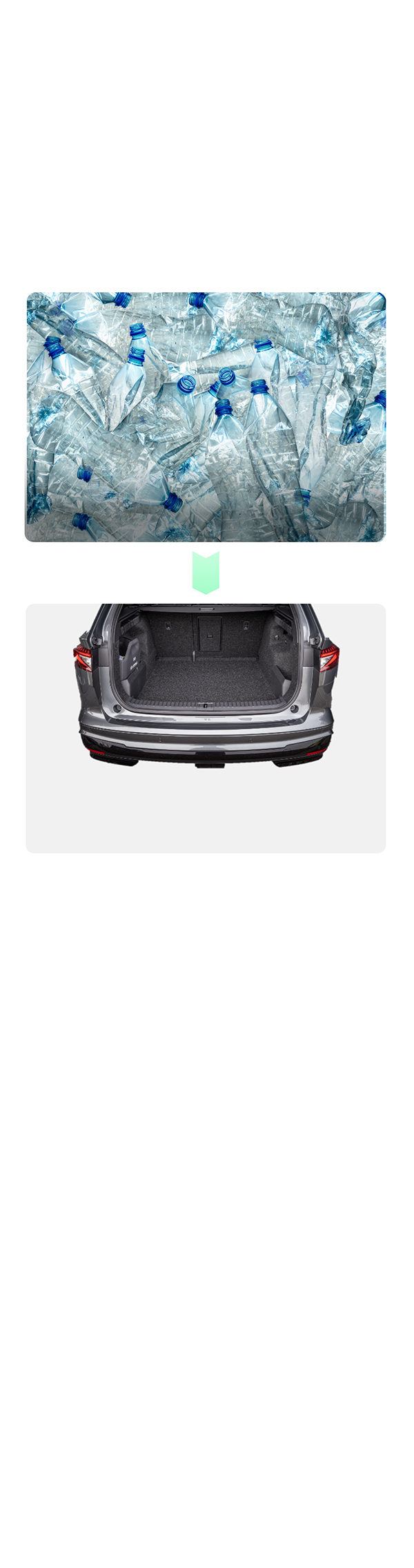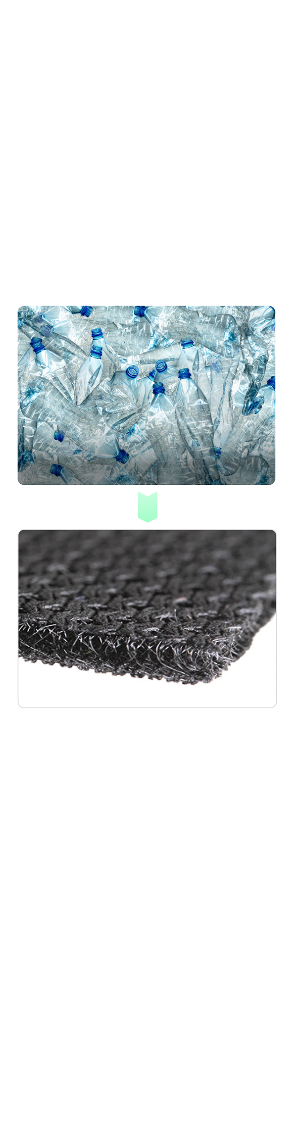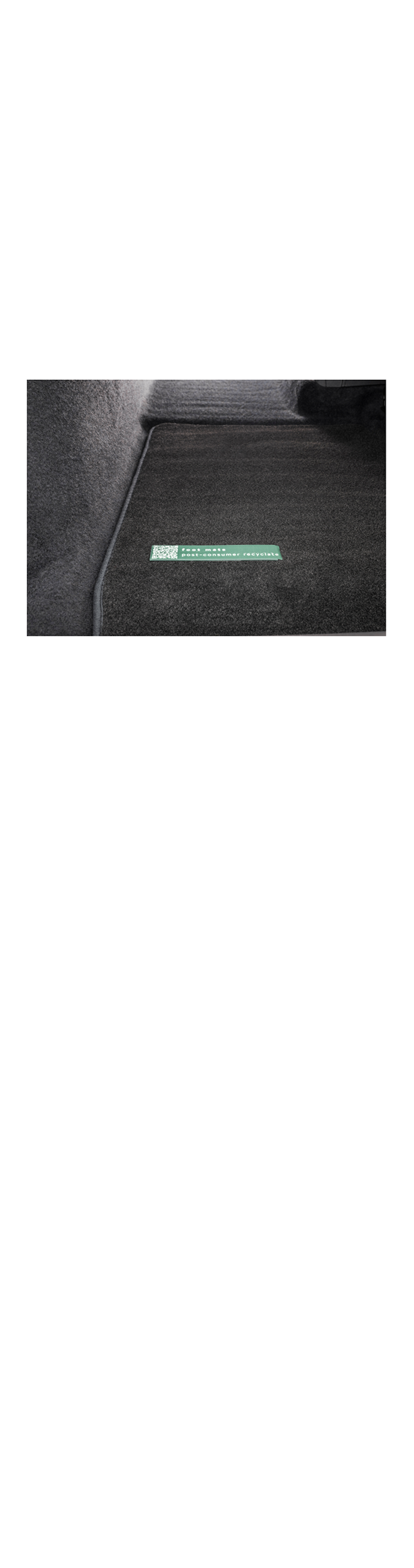 The foot mats in this model, composed of 50% recycled polyester, are 100% recyclable.