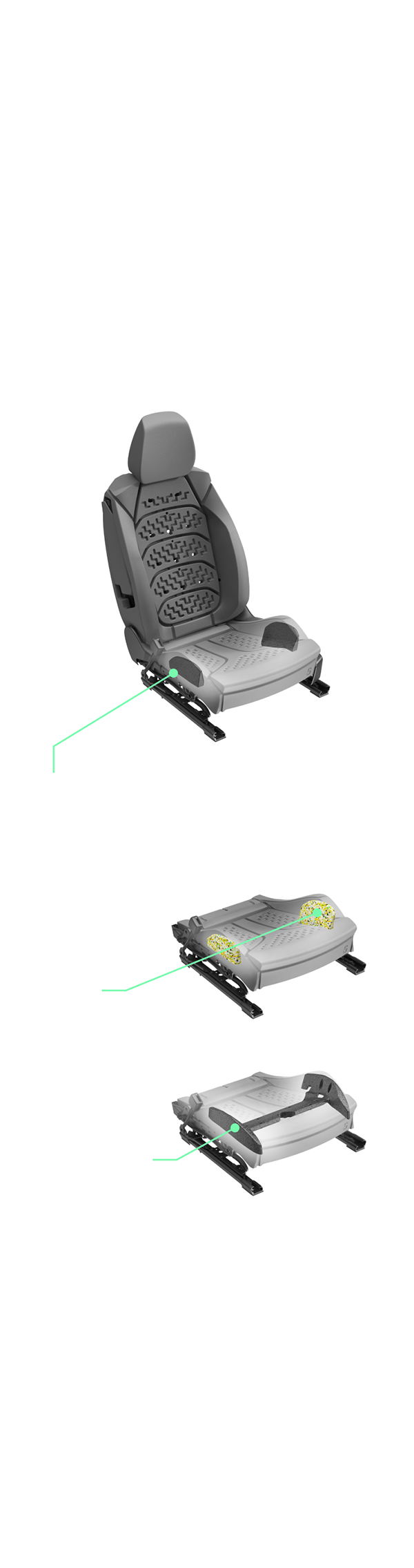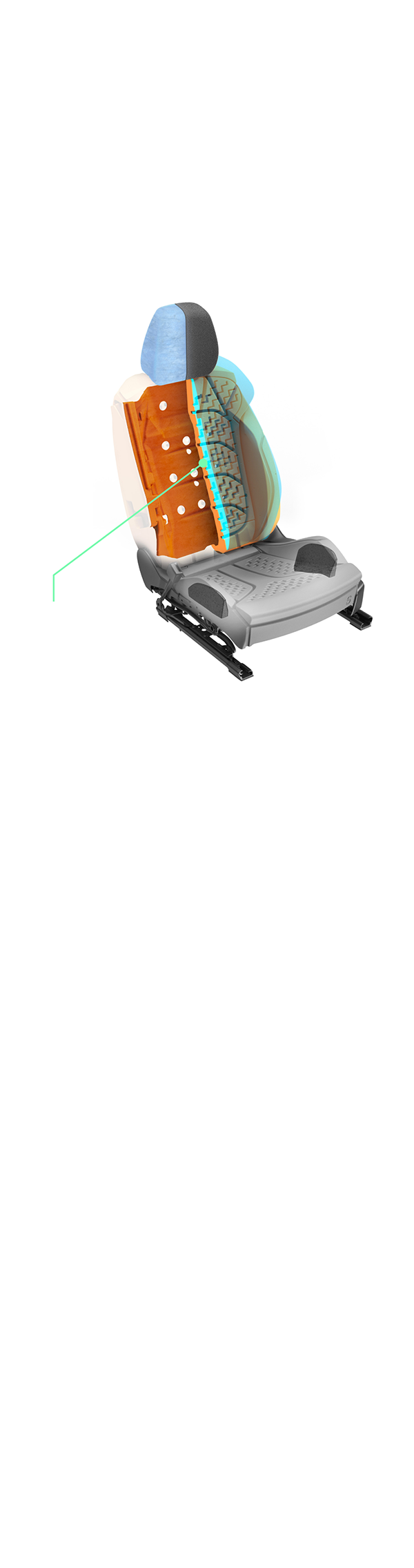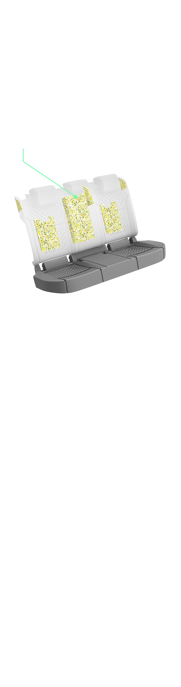 In the highlighted rear-seat structure of the 2023 IVET show car, polyurethane (PUR) foam is cleverly repurposed. Recognised for being hard to recycle, the foam in this case is sourced either from old mattresses (post-consumer recyclate) or from production waste (post-industrial recyclate).